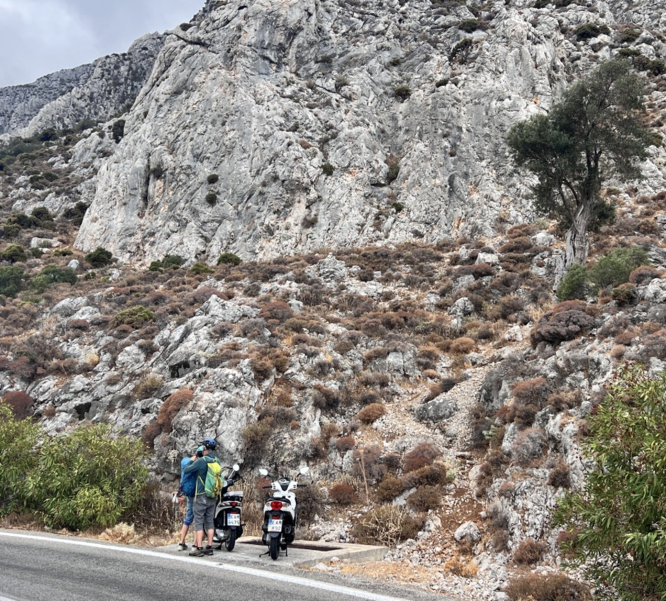 Am Sonntag geht es mit dem Roller nach Palionnisos und von dort einen nicht ganz einfachen Weg zu einer kleinen, einsamen Bucht, die wir zum Baden wieder einmal für uns alleine haben. Zur Mittagszeit befinden sich die Kletterrouten im Schatten und wir steigen ca. 15 Minuten auf.